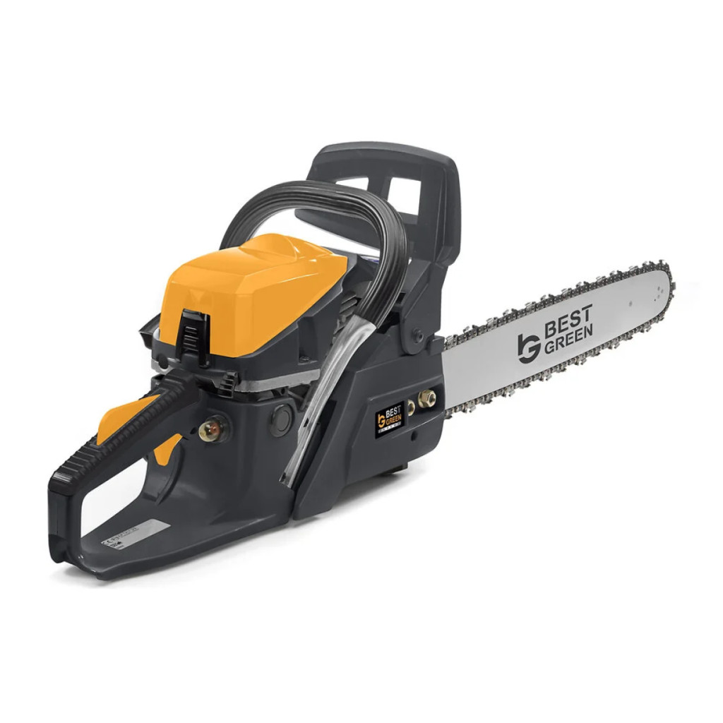 Teljesítmény, megbízhatóság, praktikum a Best Green 5050 benzines láncfűrész ideális társ a tűzifa vágásával, gyümölcsfák metszésével, nagy rönkök feldarabolásával kapcsolatos kisebb és nagyobb munkák elvégzéséhez a modern hobbiszektorban. A BG 5050 azok számára készült, akik a láncfűrészt rendszeresen használják a zöldterületük teljes körű karbantartására. 2 ütemű 49.3 köbcentiméteres 2.2 kW-os erős, robusztus, motorral szerelve, amely képes hosszan tartó munkameneteket is hatékonyan elvégezni. 40 cm-es vezetőlap, .325 col; láncosztás, a láncfeszítő az oldalsó anyán keresztül könnyen beállítható. Főfogantyú praktikus funkcióvezérlőkkel, széles első fogantyú, amely lehetővé teszi, hogy nagyobb kontrollt gyakoroljon a használat során.