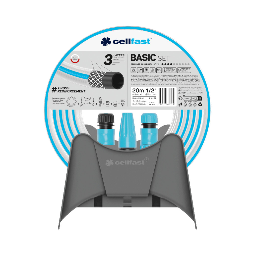 CELLFAST Locsolótömlő 3 rétegű BASIC SET 1/2" 20 m + fali tartó