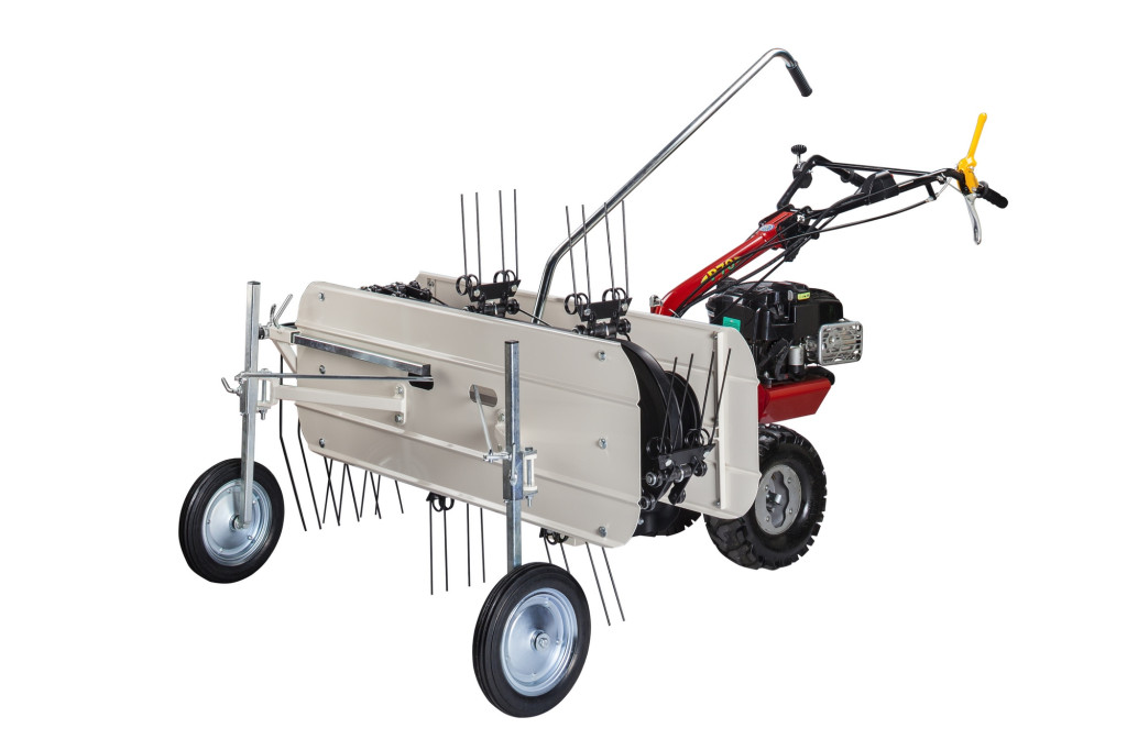 Ideális munkaeszköz a frissen vágott fű levegőztetési és szárítási folyamatának optimalizálására az oldalsó gereblye segítségével továbbá a következő betakarítást előkészítő oldalhajtások is létrehozhatók. Szalag 7 fésűvel, egyenként 2 pár hegycsúccsal. Első kormánykerekek a vezetőállásból kezelhető karral.