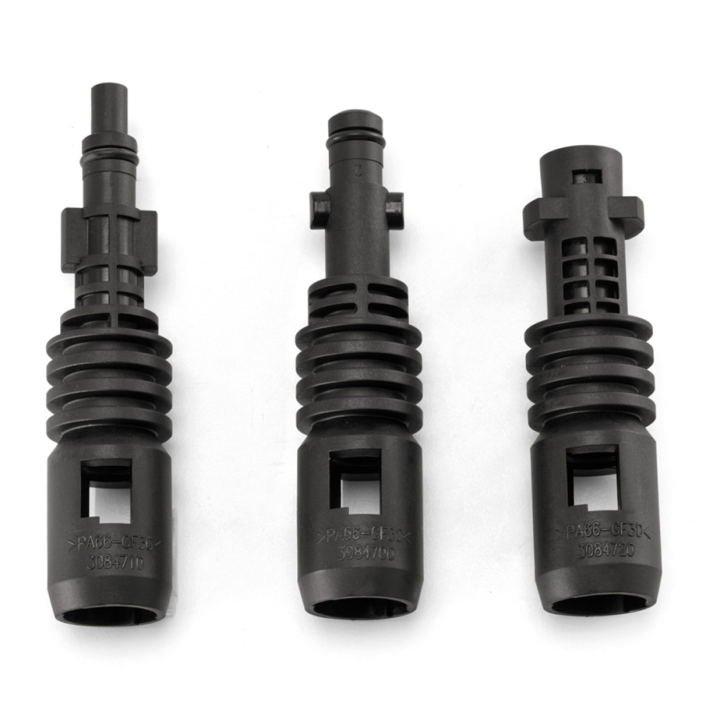 3 univerzális adapterkészlet, amely lehetővé teszi a STIGA alkatrészek és tartozékok használatát különböző márkájú magasnyomású mosókkal. A készlet kompatibilis az összes STIGA HPS 110, HPS 235 R, HPS 345 R, HPS 550 R és HPS 650 RG típusú mosóval.